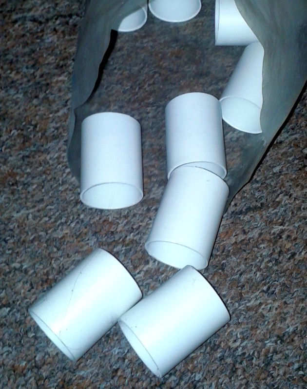 Budowałem już kiedyś pułapki basowe według projektu Brendana Minisha, opublikowanego na stronie studiotips.com. Działają dobrze i są w miarę proste w budowie – po co więc wymyślać coś nowego? Na stronie studiotips.com znajdziemy kalkulator do wyliczenia pułapki w pliku excela – według tych wskazówek wyliczyłem potrzebne parametry. Nie dokumentowałem procesu powstawania skrzynki z płyty wiórowej – mam nadzieję, że nie jest to proces nie do odtworzenia we własnym zakresie. Skrzynkę skręcamy śrubami i sklejamy klejem – powinna to być szczelna i sztywna konstrukcja, stąd konieczna jest uwaga i dokładność podczas przycinania i klejenia. Pułapka, którą zbudowałem, ma wymiary wewnętrzne 101,2cmx56,8cmx30cm, rurki elektroinstalacyjne mają średnicę wewnętrzną 33mm, tak więc z wyliczeń wynika, że potrzebuję na przykład 24 rurek o długości 48mm: