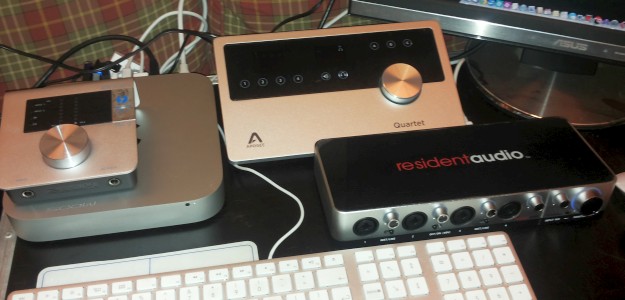 Resident Audio T4 (Thunderbolt), Zoom TAC-2 (Thunderbolt), Apogee Quartet (USB), M-Audio Profire 2626 (firewire) i przypadkowo starutki MOTU 828 w pierwszej wersji (firewire).