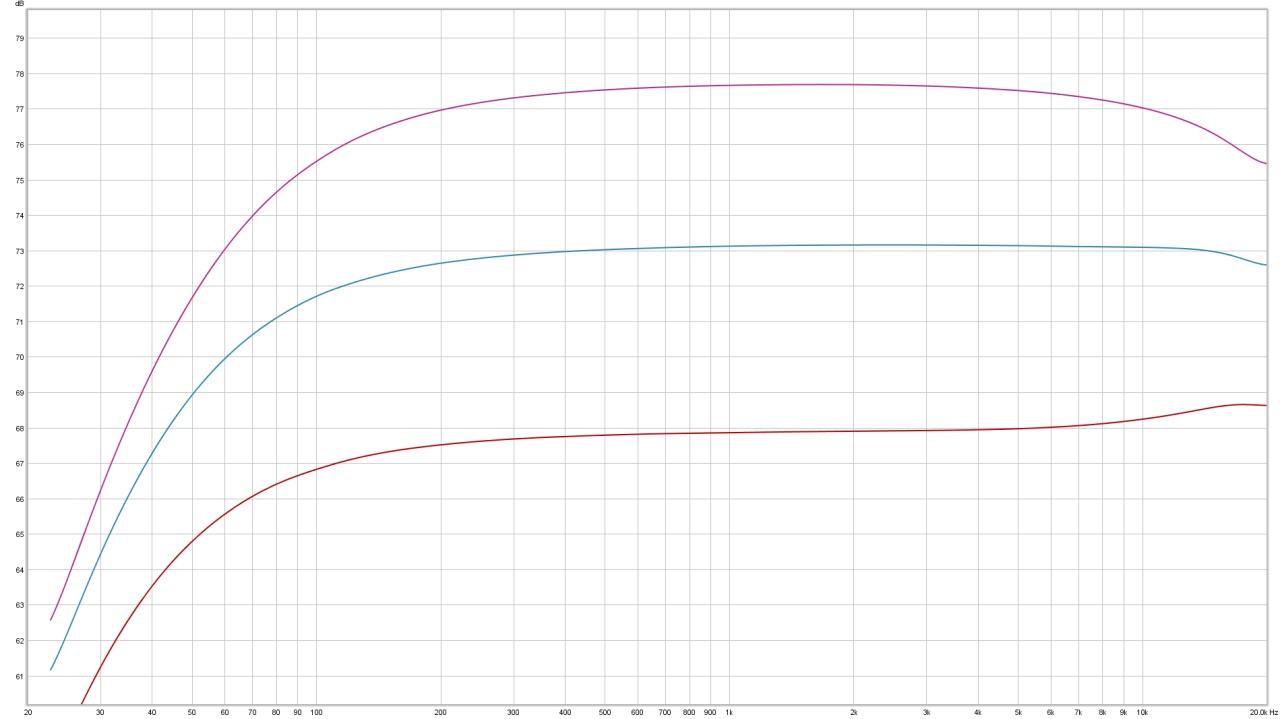 Pasmo przenoszenia do gitary akurat – z dołu 60Hz przy spadku 3dB. Poziomy wyjściowe dla częstotliwości 1kHz wynoszą 73,1dB dla 4Ω, 67,9dB dla 2Ω oraz 77,7dB dla 8Ω. Przeliczając to na napięcia mamy wspomniane 2V dla 4Ω, 3,4V dla 8Ω i 1,1V dla 2Ω.