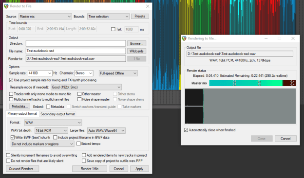 I tu ciekawostka – z dysku HDD jest szybciej! Wprawdzie niewiele, różnica poniżej 1%, ale na korzyść dysku HDD. W praktyce – bez znaczenia, uznajmy to za błąd pomiarowy. Warta odnotowania jest oczywiście prędkość całości – współczesny komputer i7 jest 3,5x szybszy od dziesięcioletniego staruszka i7. Staruszek zgrywa godzinę audiobooka w minutę (w praktyce dłużej, bo kto nie odszumia lektora), standardowy audiobook ma z 15 godzin, to mamy zysk 10 minut albo i więcej. Hmmmm…