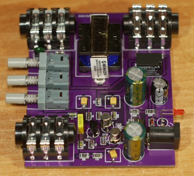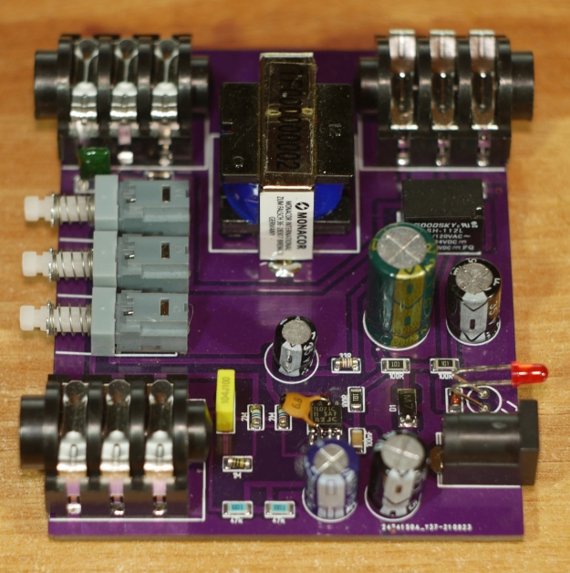Po drugie – układ tranzystorowy w przeciwieństwie do wzmacniaczy operacyjnych „natywnie” przystosowany jest do niesymetrycznego zasilania, zmniejszenie wzmocnienia w otwartej pętli (niemożliwe przy użyciu wzmacniaczy operacyjnych) umożliwia w ostateczności użycie zasilaczy impulsowych. Na razie wszystkie urządzenia wysyłam z zasilaczami liniowymi, jednak bezpieczniej, ale generalnie z impulsówką też działa. Zalecam jednak ostrożność, bo wprawdzie sam DAW-AMP od strony zasilania jest odporny na różne zakłócenia, to jednak to, co taki zasilaczyk wysyła do sieci to już inna sprawa…